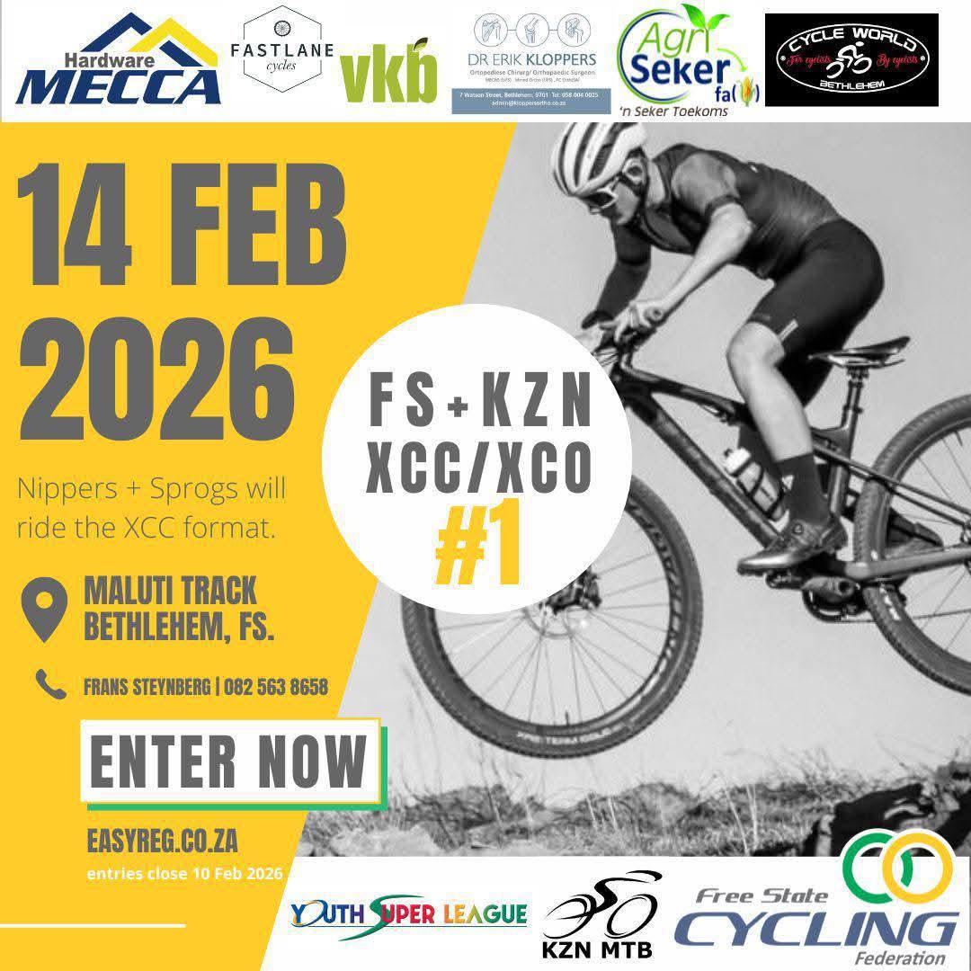 FS KZN XCC XCO #1 kicks off the cross-country season at the Maluti Track, BVHS in Bethlehem. This exciting event features XCC racing for Nippers and Sprogs, while all other categories will take on the XCO course. With a mix of fast, flowing sections and technical challenges, the race offers competitive, fun-filled racing for riders of all ages and abilities, making it a great day out for both participants and spectators.