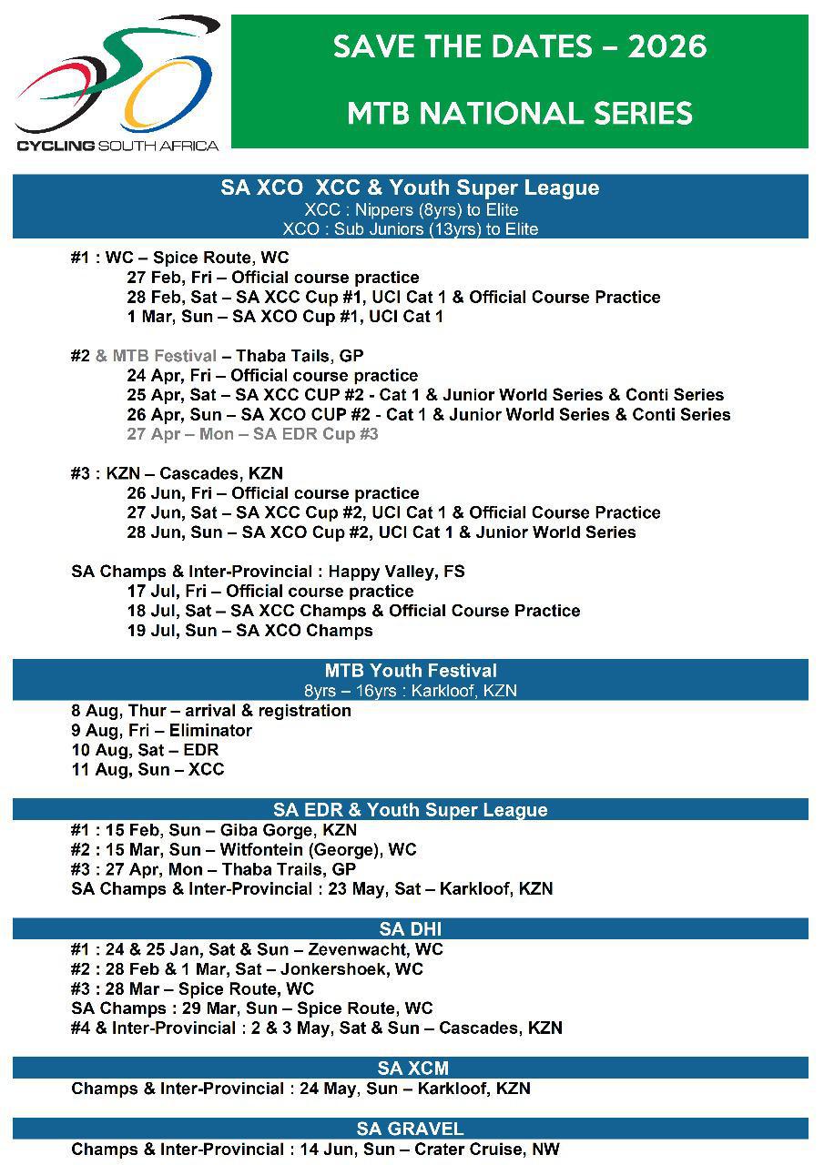 SA XCO XCC & YOUTH SUPER LEAGUE #2 & MTB FESTIVAL